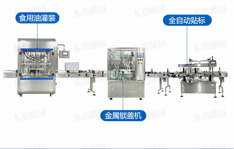 核桃油灌裝旋蓋生產線采用伺服柱塞式計量灌裝原理,適用于各種規格(0.1-1升可兼顧到2升灌裝)的南瓜籽油、榛子油、牡丹籽油、芝麻油、核桃油、山茶油、亞麻籽油、棉籽油、橄欖油、大豆油、玉米油、菜籽油等食用油灌裝。設備采用伺服系統定量推料,在人機界面數字化調節計量,并且可設定100ml或200ml等所需計量,觸摸屏一觸即達,而且可以單頭微調計量。操作簡單,維護方便,節省人工成本,生產效率更高。