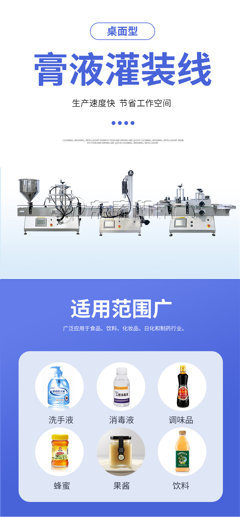 產品說明:生產線根據灌裝范圍選擇型號,灌裝部分為雙頭下潛式灌裝機,適用于不同物料不同瓶子的灌裝,配備自動壓蓋機和圓瓶貼標機,可實現不同蓋子的旋蓋貼標工作。 本設備主要適用于食品、日;