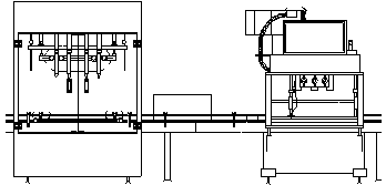 | 方案設計一:灌裝機+壓蓋機+貼標機+自動膠帽熱縮機+噴碼機+封箱機 |